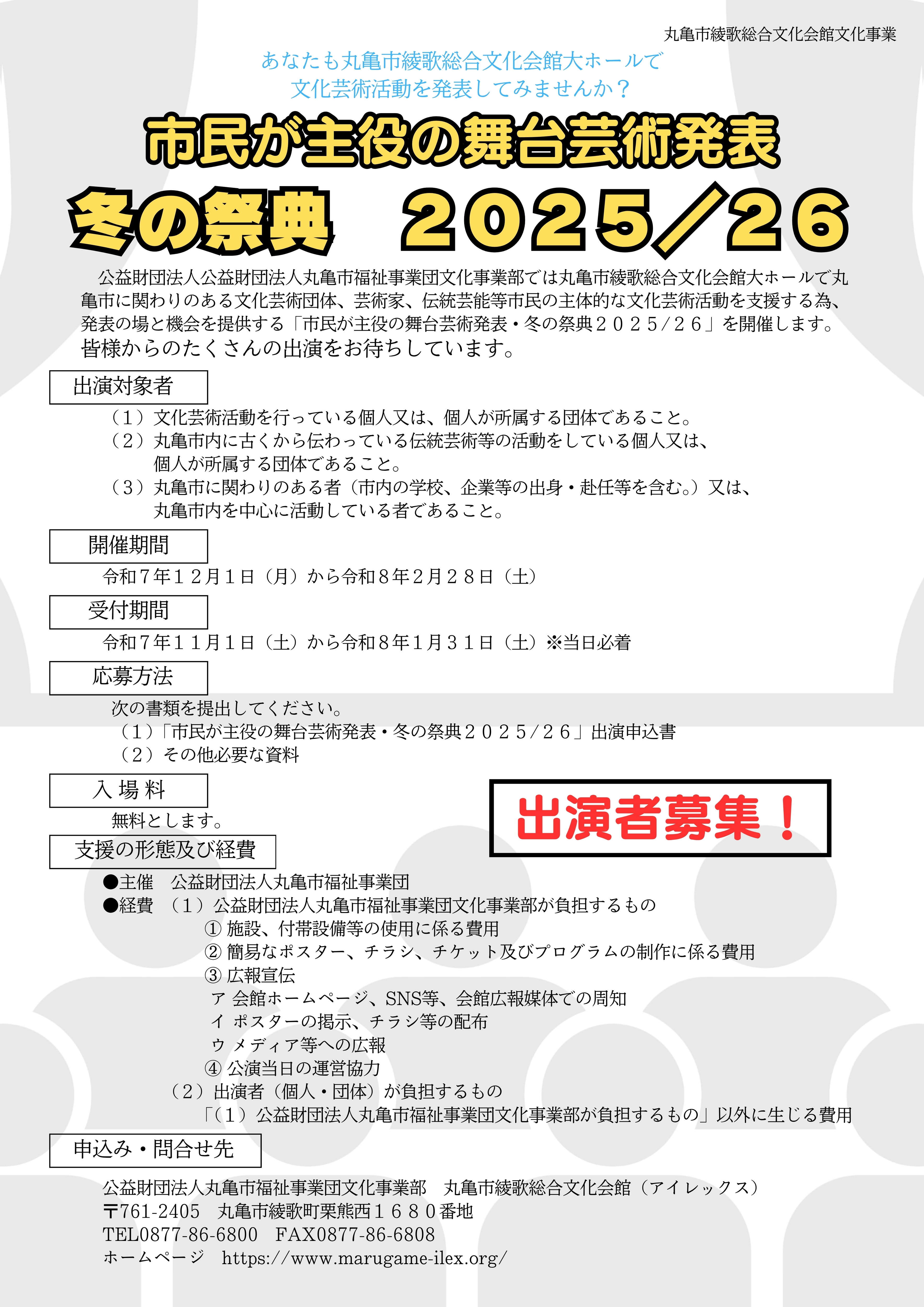 お問い合わせ先/丸亀市綾歌総合文化会館(アイレックス)